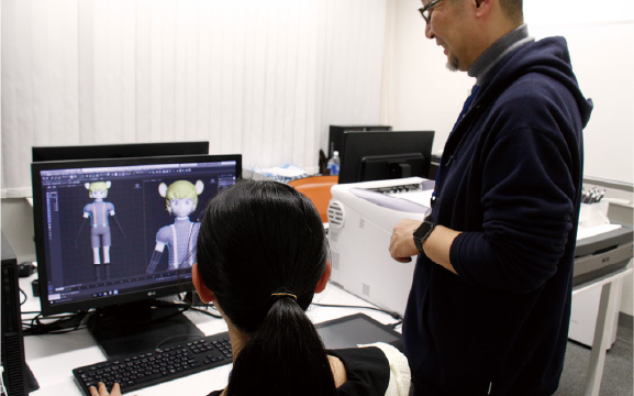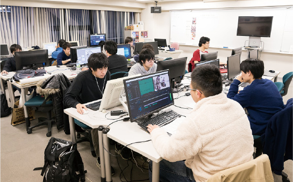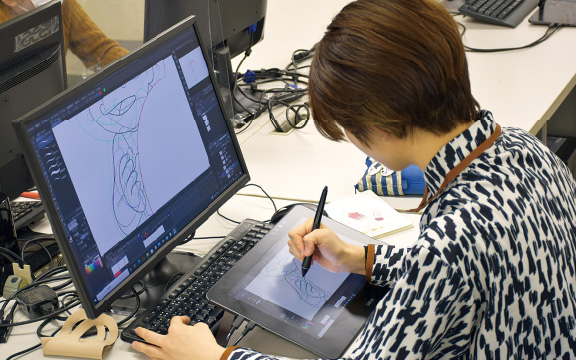 アニメーション制作における作画、仕上げ、演出技法、撮影編集、3DCGなどすべてのセクションを3年間かけて習得。アニメーションを一つのパッケージとして完成させるまでのトータルプロデュース能力を養い、アニメーターはもちろん、監督、プロデューサー、演出家、制作デスクなど、総合的な知識が必要な職種も目指すことができるコースです。