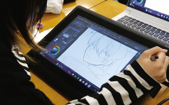 魅力的なキャラクターデザインやイラストの構図、色彩の知識、漫画の表現方法など、さまざまな技術を身につけることであらゆる分野で活躍できるクリエイターを目指せます。幅広く学びながら漫画家とイラストレーターどちらの方向に進むのか、志望する進路に合わせて制作する作品を選択することもできる3年制コースです。