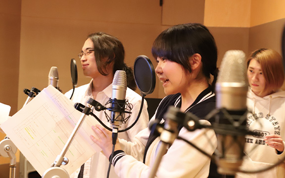 声優だけではなく映像作品に出演する俳優や、歌のお仕事にも興味があったのでさまざまなことを学べるこのコースに入学しました。