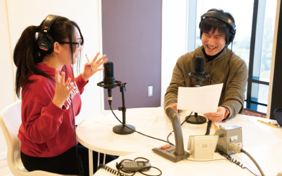 学生自身でラジオ番組制作をします。実際に「企画」「制作」「収録」まで行い、ラジオ番組制作を通して「フリートーク力」や「正確に物事を伝える力」を身につけます。